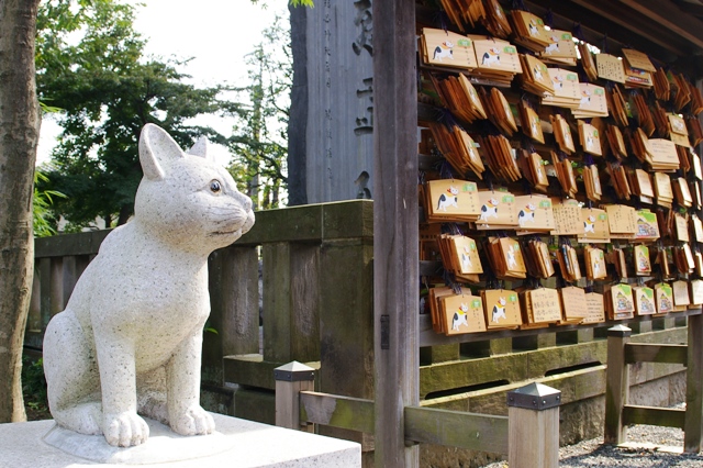愛猫の無事や健康を祈りに多くの方がいらっしゃいます。境内社の蚕影神社(こかげじんじゃ)がその社で、蚕の天敵がねずみ、猫を守り神にしています。「絵馬」に願いを書いたら、無事に帰ってきたという報告も寄せられています。